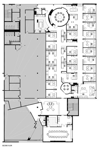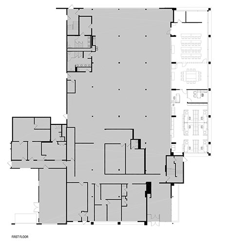 The first floor of the addition was used for a new Training Room with updated AV, Conference Room, private office and open plan area for 10 staff members.