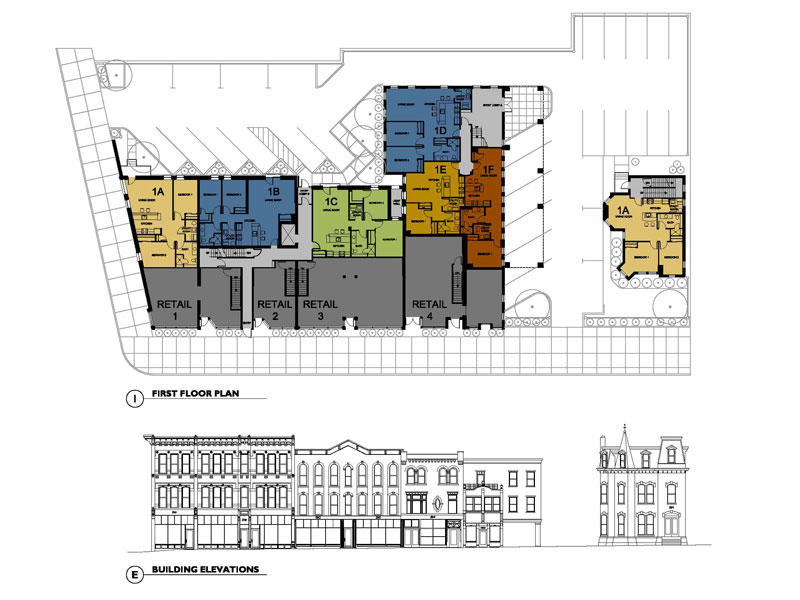 The project included five vacant buildings, including a stand-alone three story mansion located along the 800 block of Main Street in Buffalo, NY. The project was developed by First Amherst Development Group to create a new urban residential/retail area connecting downtown Buffalo, the historic Allentown District and the Buffalo Medical Campus. The project includes 29 market rate apartments and approximately 4,600 sq. ft. of street level retail space. The new second story addition to the rear of the northern most building maximizes the number of apartments on the site.