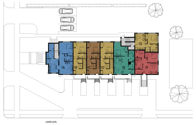 Final apartment layouts were refined to retain existing lighting where possible, detailed wood work and overall interior details. All interior finishes were selected and specified including installation details. Cabinetry and plumbing fixtures were selected for all kitchens and bathrooms. Exterior accent paint colors were also selected.