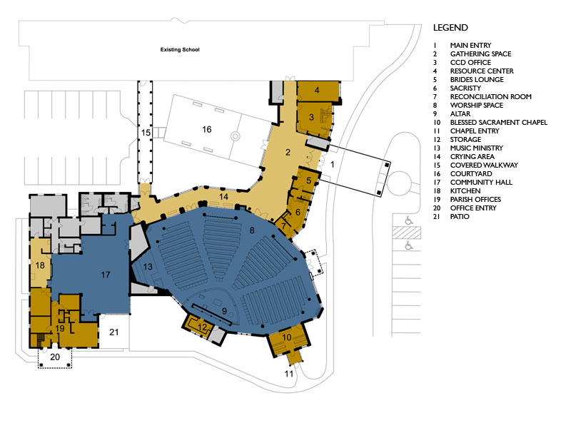 The Catholic parish of Our Lady of Perpetual Help is located in Lake View, New York. The project included a new church, community center and kitchen support areas, relocation of the parish offices and a beautiful courtyard connecting the new church to the existing catholic school.
